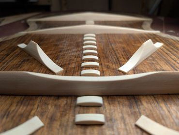 This LM12 represents a dramatic shift in building style for me. This is my first instrument to feature my pinless, skeleton bridge, floating fretboard and fully compensated nut and saddle. It certainly will not be the last as the result is a beautiful blend of overtones and a response that is eager to please the ear.